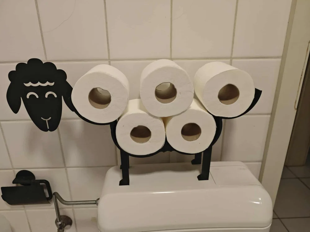 Suport amuzant pentru role de hârtie igienică în formă de oaie – fără găuri în pereți, fără șuruburi (doar puțin lipici), depozitează multe role în spațiu minim!