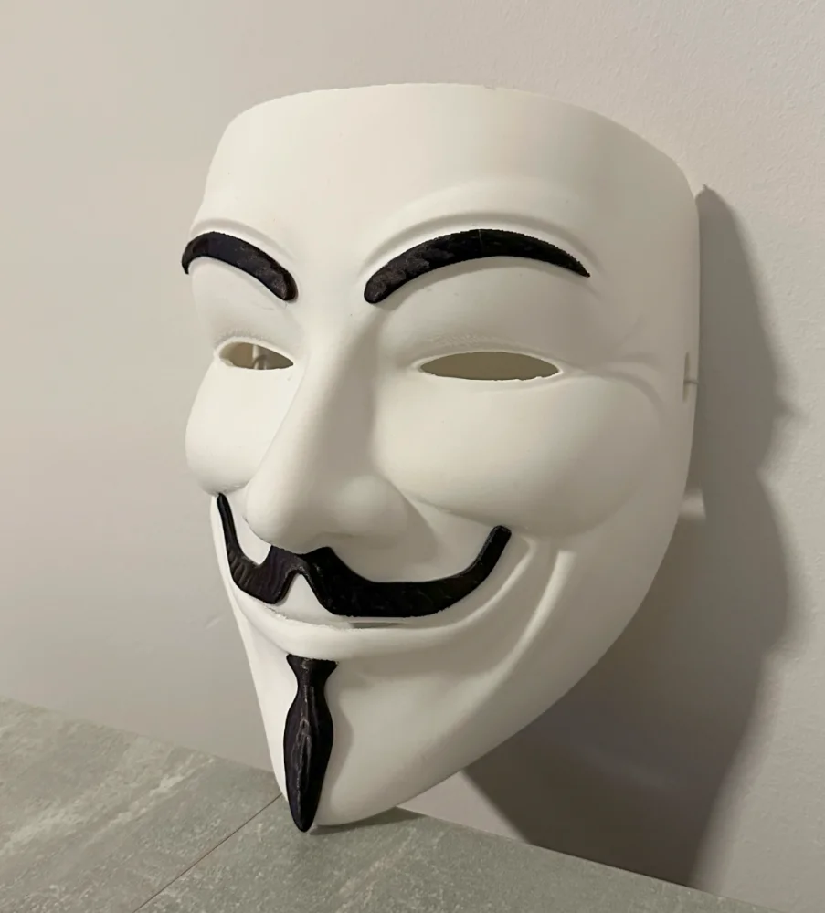 Aceasta NU este o mască obișnuită – este replica fidelă și detaliată a celebrei măști din V for Vendetta, printată 3D cu mare precizie, perfectă pentru cosplay de top, colecționari sau pur și simplu să faci o declarație puternică.
